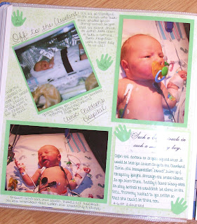 I believe that when I scrapbook I perserve memories that myself or my family has had. My littlest one is a perfect example, he's been through so much during the first year. To see him now, you'd never guess how much he has had done. Used CM & Quickutz.