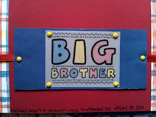 Anyways, on a walk one day, My youngest walked up to his brother and started holding his hand, all on his own. It was truely an "Aww" moment. So, what did I do...capture it and scrap it of course!