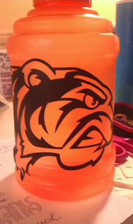 After that, I was on a roll!! Next was water bottles. Now I am currently looking to make the whole football team water bottles with the tiger and their numbers!! Just have to find only 25 water bottles to add the vinyl tiger too.